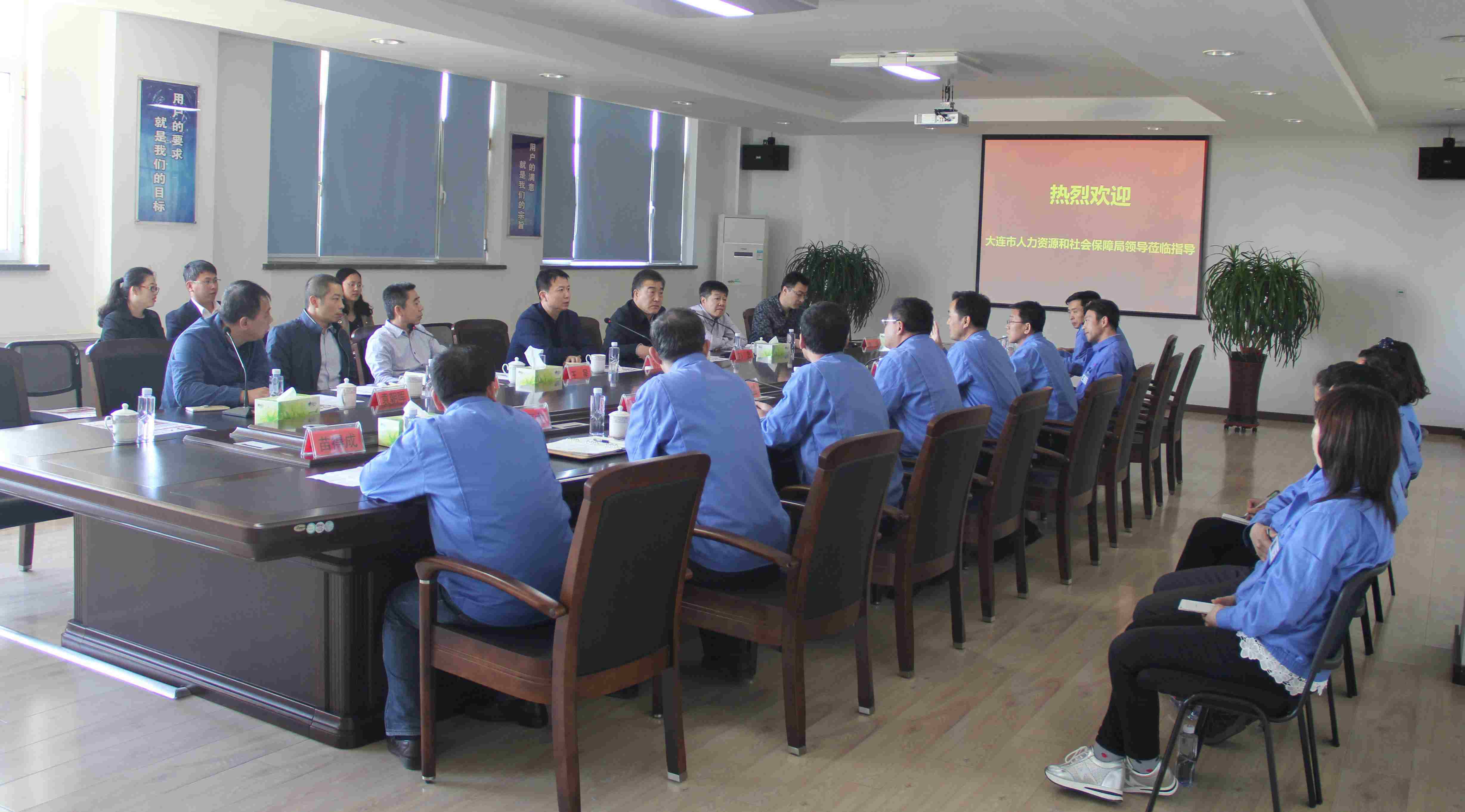 2016年4月28日大连市人力资源和社会保障局孙长久副局长带队一行14人到羞羞视频软件在线下载走访调研,长兴岛劳人局…