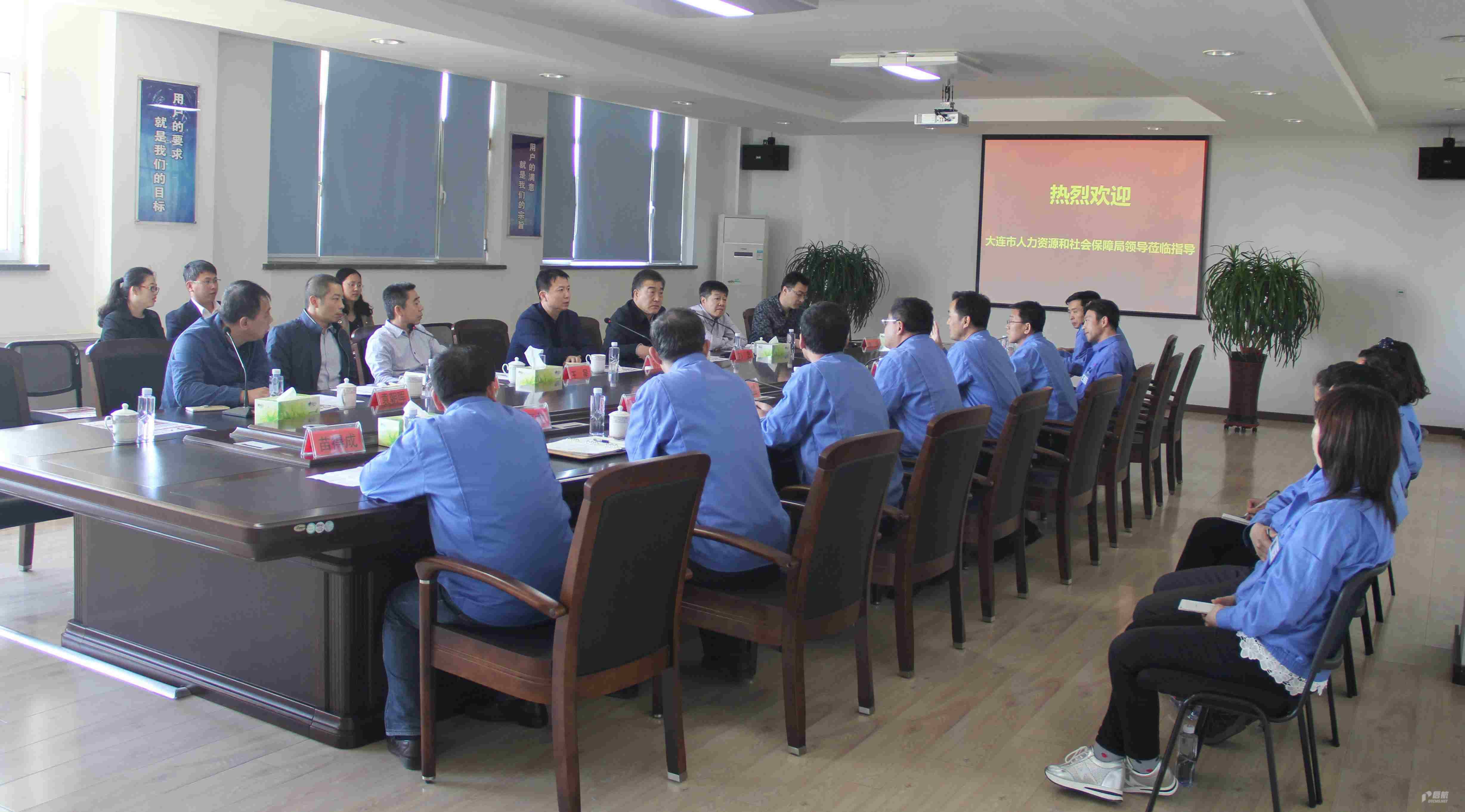 2016年4月28日大连市人力资源和社会保障局孙长久副局长带队一行14人到羞羞视频软件在线下载走访调研,长兴岛劳人局袁朝晖局长等陪同调研,公司总经理郭德军等参加调研座谈。