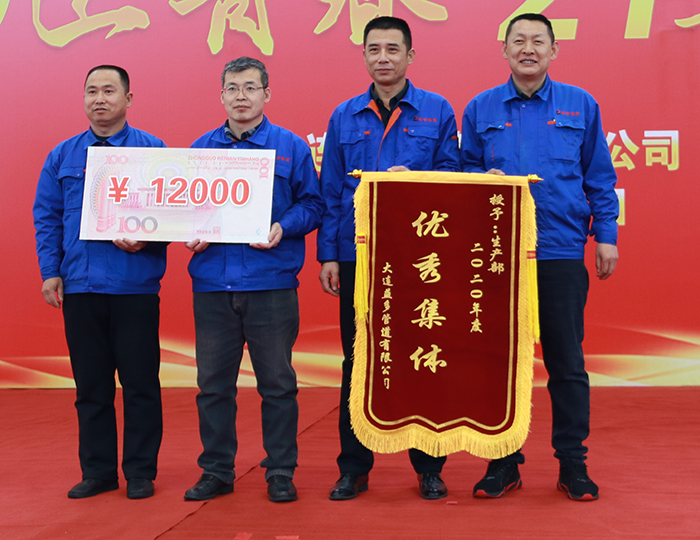 2020年,公司在新冠肺炎疫情和国内外经济形势无比严峻的情况下,生产经营创下了逆势增长的骄人业绩,涌现出一批先进个人和先进集体,29名员工获得年度特殊贡献奖,36名员工获得先进个人,5个部门获得先进集体。会上姜忠强、柴小东、韩梅分别代表先进个人和先进集体发言。