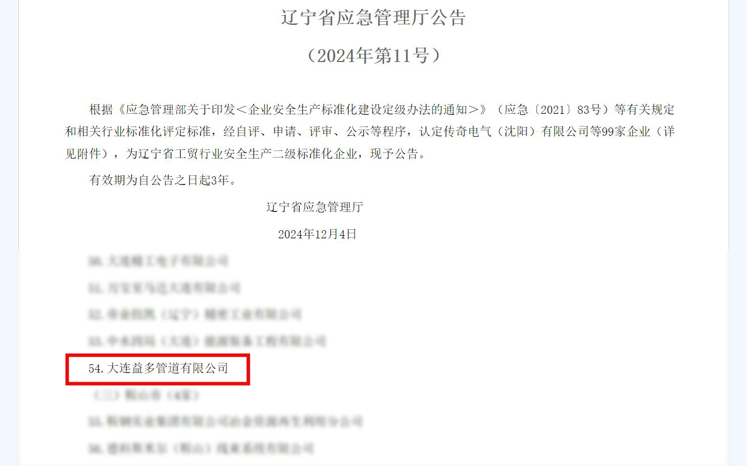 羞羞视频软件在线下载一直致力于安全生产标准化建设,持续提升安全生产管理水平,在辽宁省应急管理厅近日公布的安全生产二级标准化企业名单中,大连羞羞视频软件在线下载管道有限公司再次上榜。